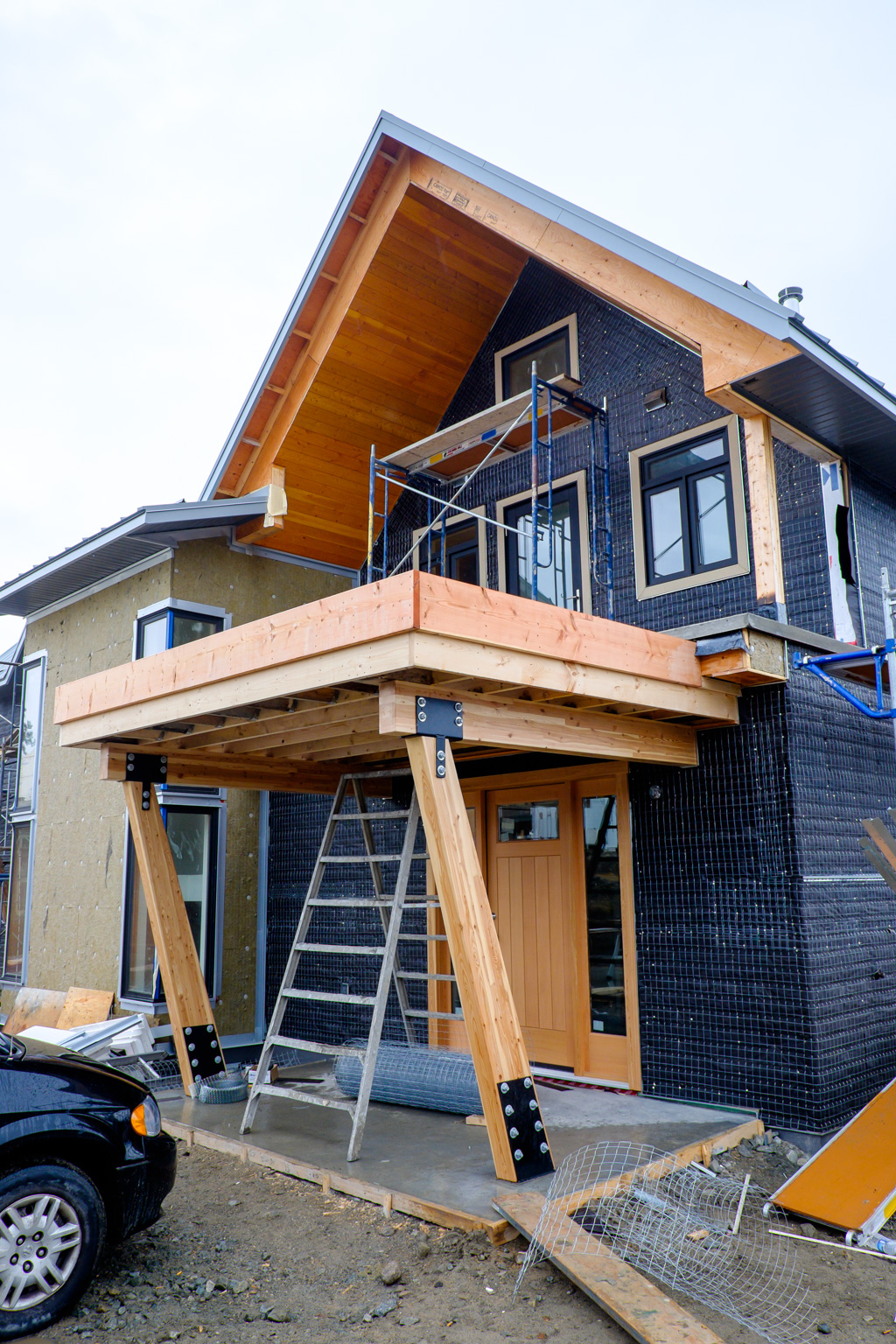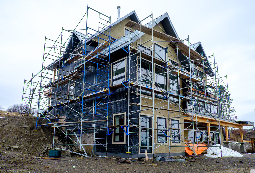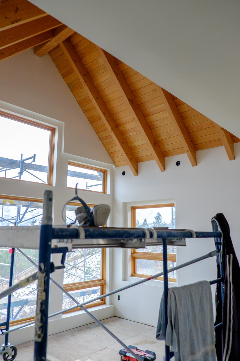 Paper and wire is going on quickly for the stucco guys. Joel has finished the trim, which couldn’t come soon enough. Big job. Beer was called for after that.