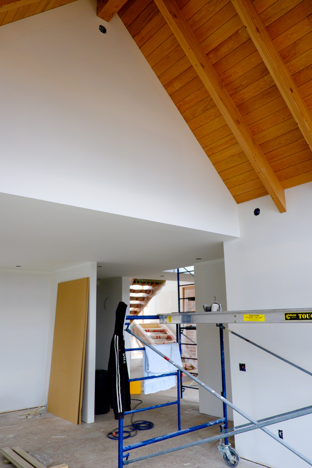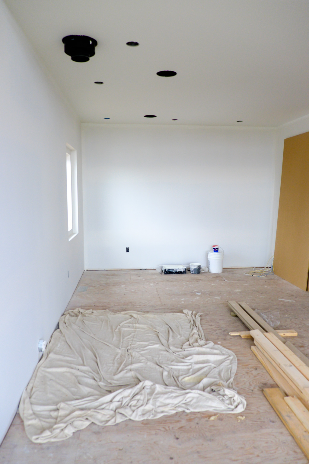 Mac is back and painting. Living room is looking good.