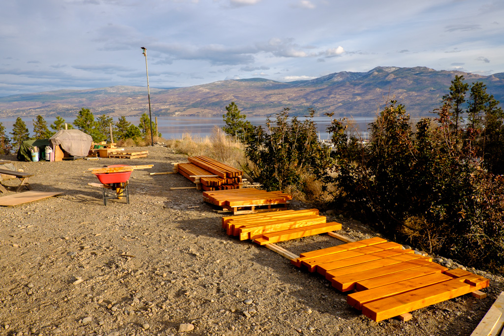 Deck posts are in. That amazing looking deck railing panel is unfortunately a no go. Stupid building code, stupid District of West Kelowna, stupid laws. Back to the drawing board. Looks like it’s going to be vertical metal bars instead of wire mesh.