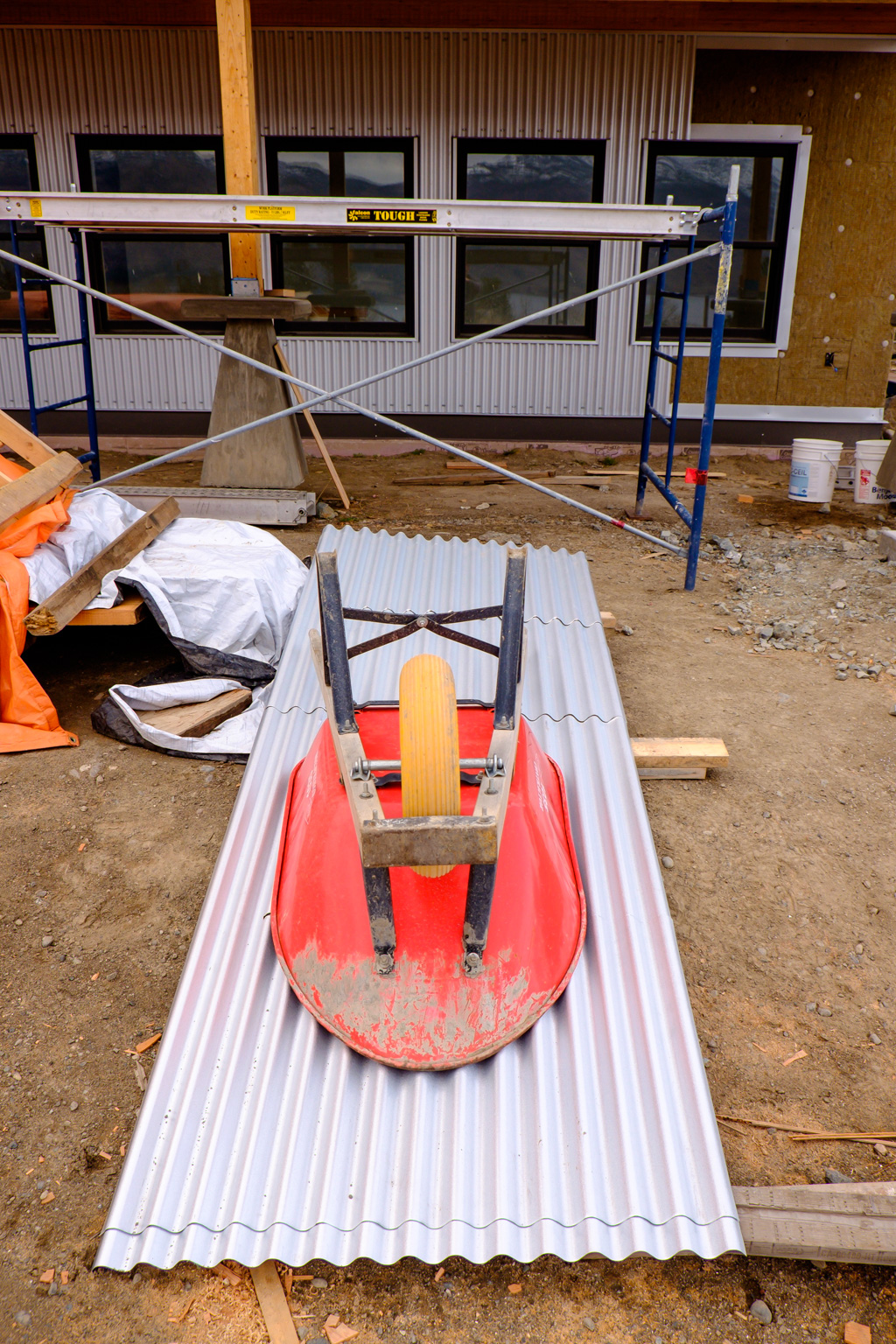 Galvalume going on the front of the garage this week.