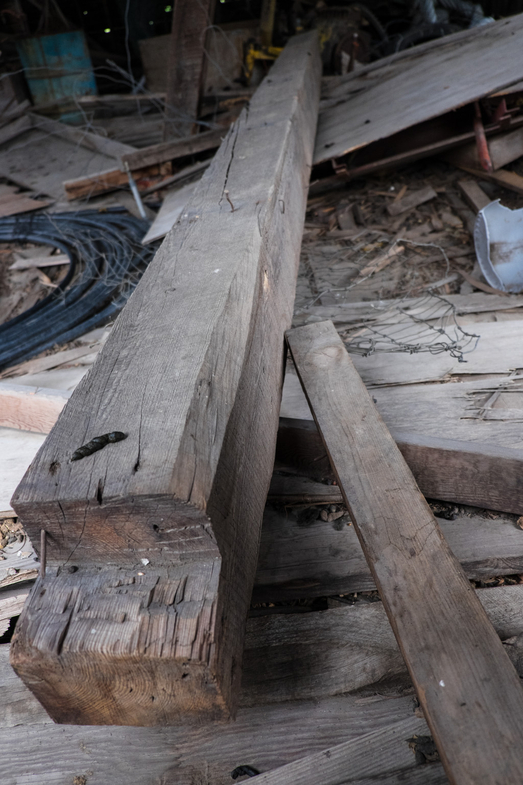Seems to me the beam serves a purpose it here. We’ll replace the beam we take. It’s fir, about 8×9′ and 16′ long.