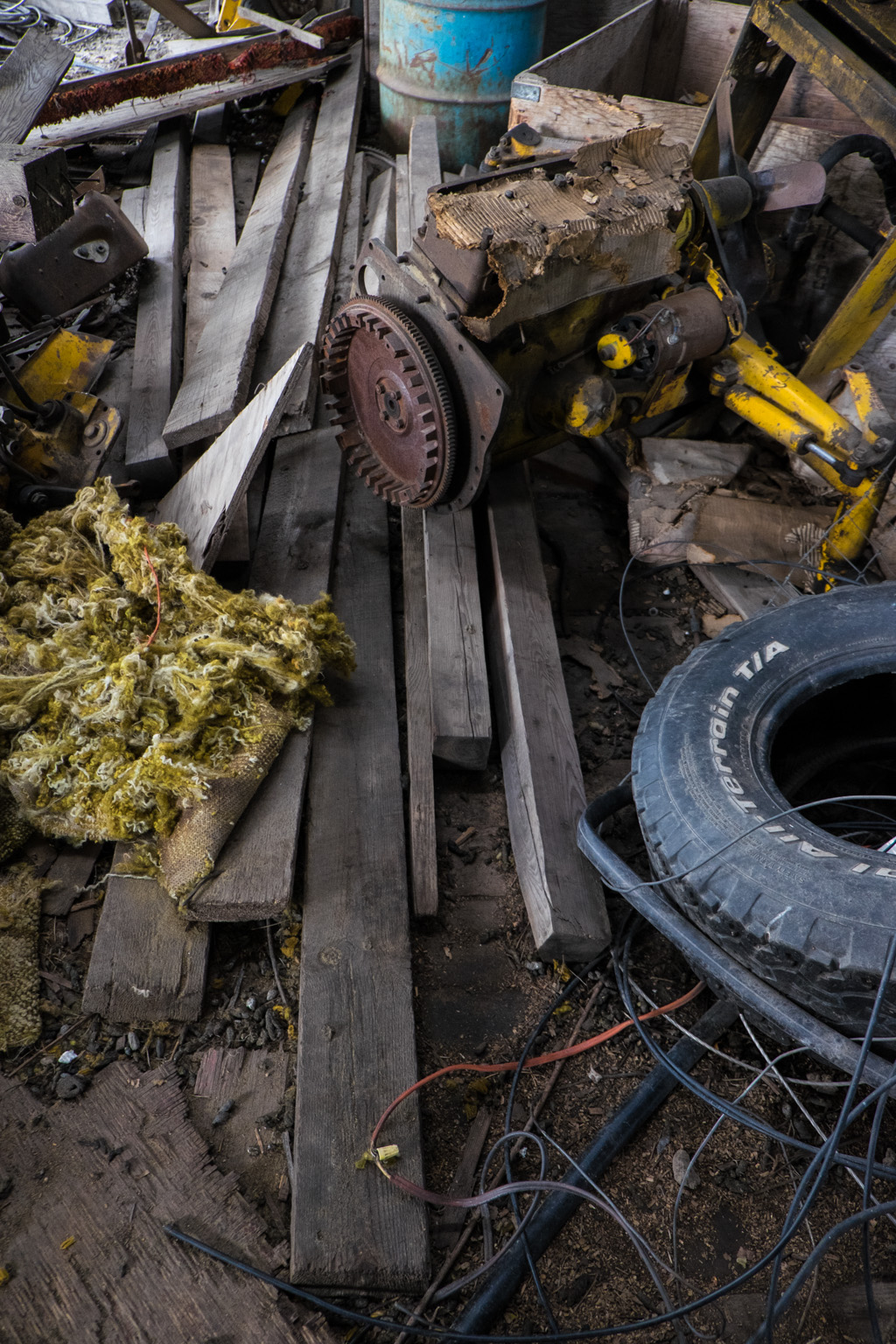 Here are some more potentially useful pieces of wood. And some piece of motor from something on top of it.
