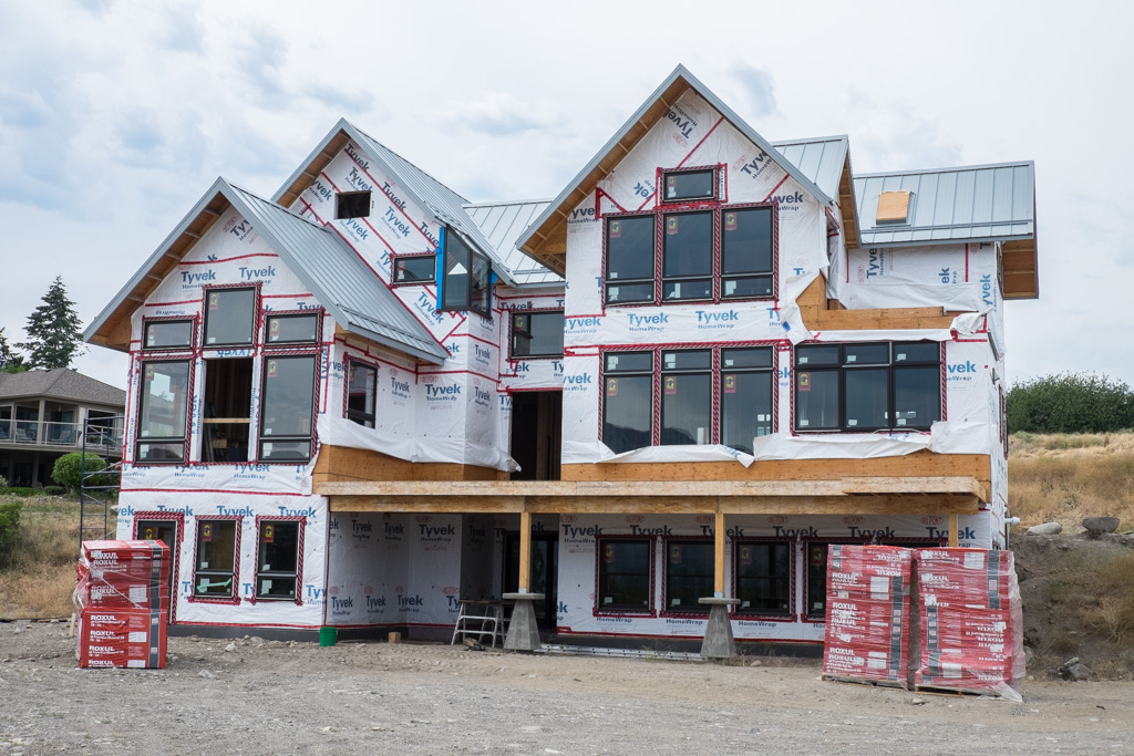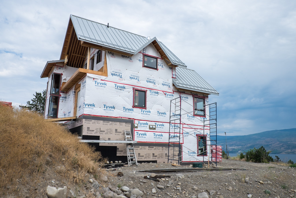 Back to discussions of shit shows. Flashing for the wood stove chimney is in. Getting that all sorted out has not been fun, but in the end I think everything has worked out for the best. I thought originally, that you just fire up a metal pipe outside the house for your chimney and that was that. Alas, no. The chimney has to be 2′ taller than the highest point within 10′ (if that makes any sense). We would’ve had to run it about 10′ up from the edge of the roof to go higher than the peak. Guy wires and/or braces would’ve been required. It would look terrible and the howling winds we get here in the winter would make a lot of noise. It’s also preferable (I found out) to run the chimney inside the house to create a better air draw. A warm chimney works better than a cold one. Who would’ve thought? It also stays cleaner when it runs up through the house.