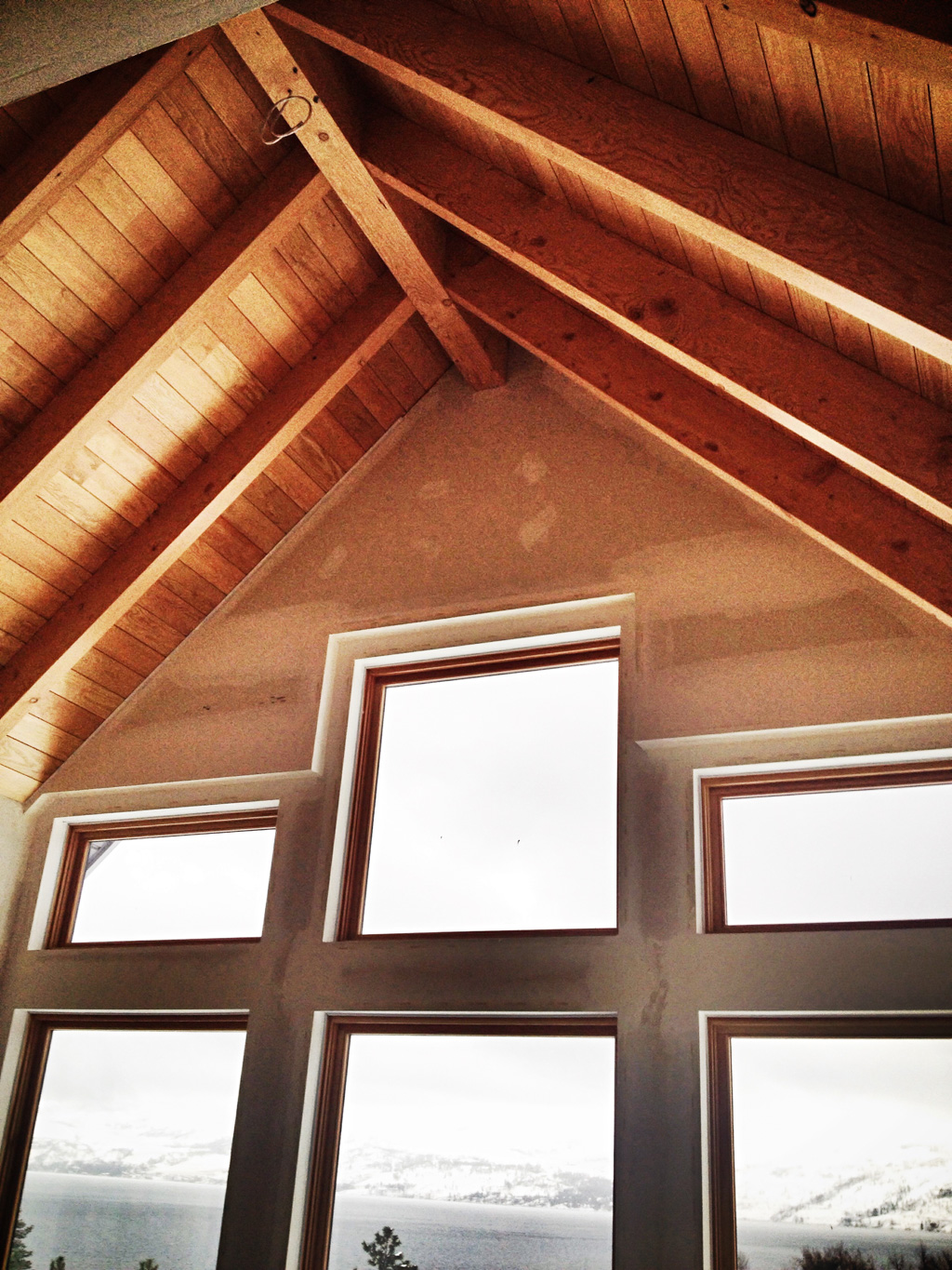 Really digging the living room ceiling. Fir t&g with false beams made by Plexus in Naramata.