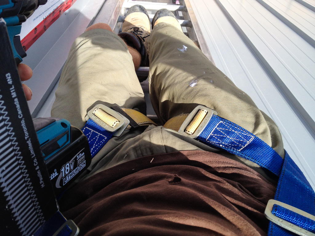 The view from up high. Installing the last window. I get to be the guy on the roof.