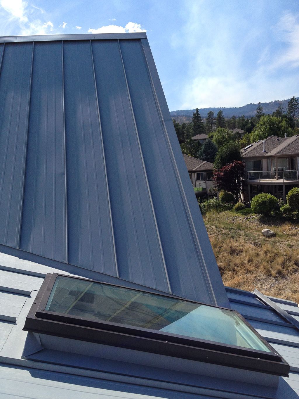 Installing the skylights. Once again, I’m the guy on the roof. A bit toasty in 32 degree heat. I’ve lost 10 lbs. since the heat wave started a month ago. Not good, since I didn’t have much to start with.