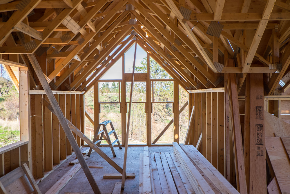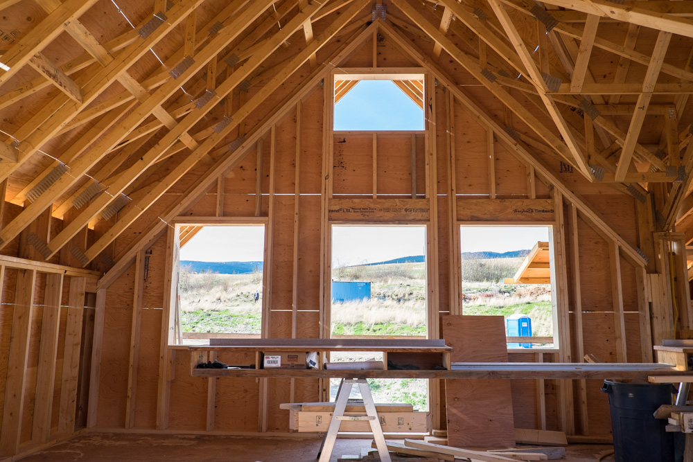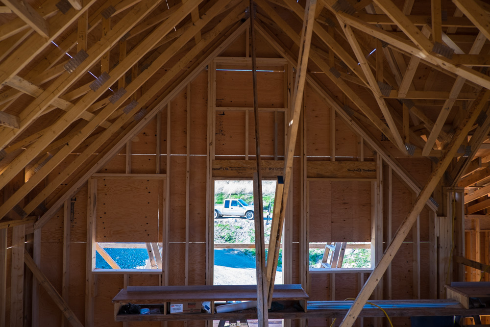 Staring at the master bedroom ensuite bathroom. Also brace free! So glad I won’t be tripping over them and maneuvering 4×8 sheets of plywood between them.