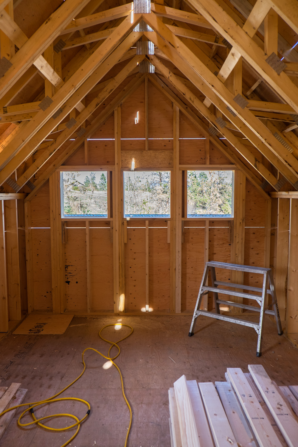 Windows & doors cut out. Added a high window that was not in the plans. Better for light and will open to allow hot air to escape. Adding another opposite to this one for the front.