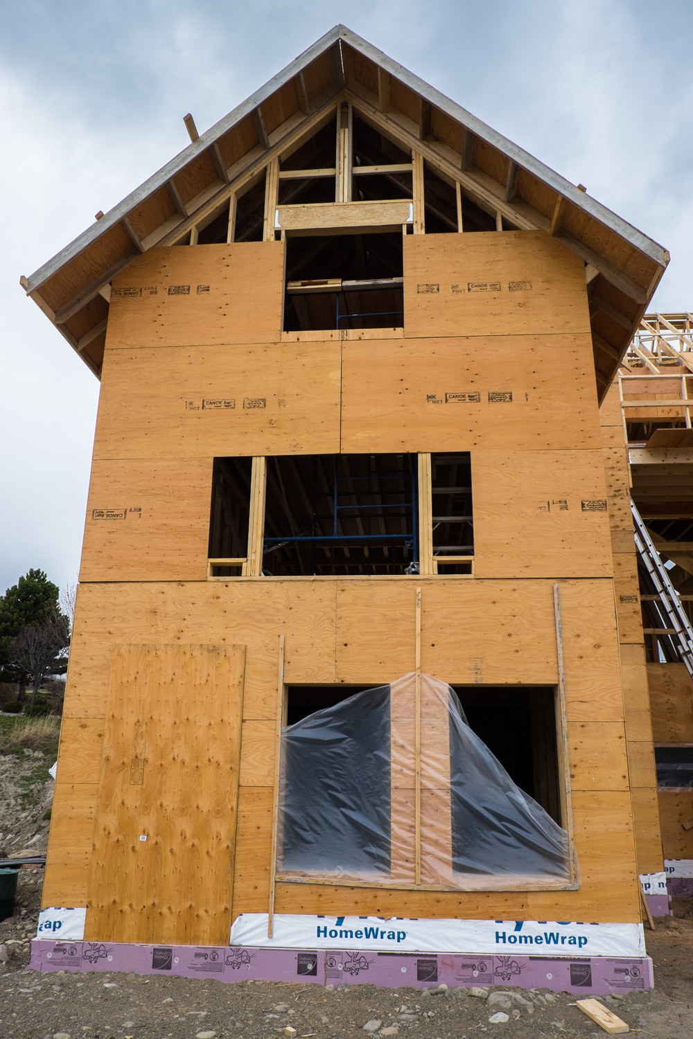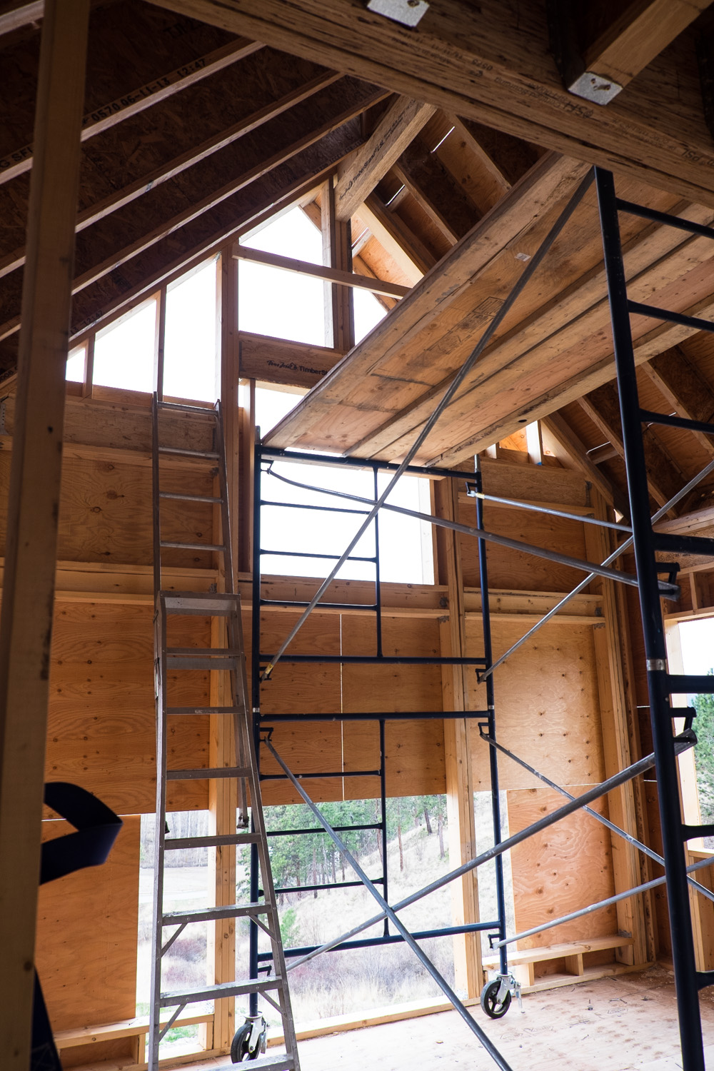Pretty wobbly cutting plywood at the top of this scaffold. Getting pretty good at it though.