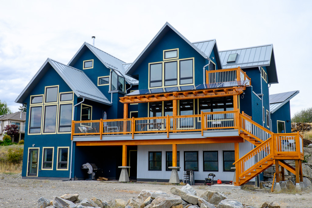 The house with colour and solar panels. Note the ones on the garage behind.