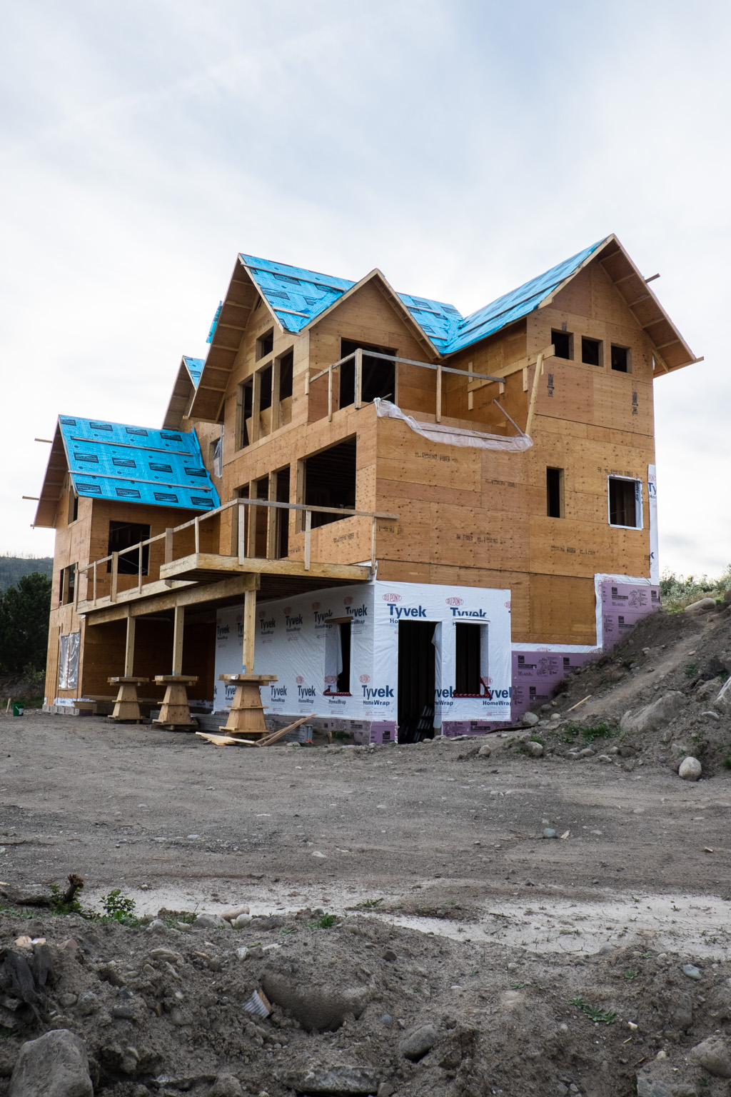 Prepping Rosanne’s studio for the windows. It’s amazing what has to be done to seal a house up for windows. Lots of house wrap, tape and blue skin.