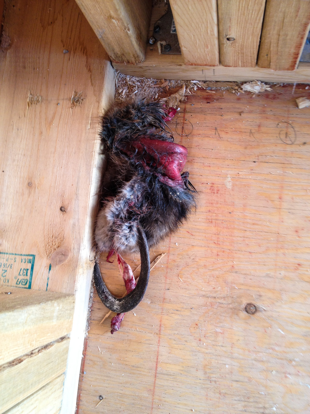 Ok, what the hell is this creature? I found this in our living (oh, the irony) room. There had been a family of Great Horned Owls hanging about and it seems they had a feast on something, but we have no idea what. I put the skin (that was all that was left with the weird tail and feet) outside and was going to check it out more later. I came back half an hour later and it was gone. It obviously didn’t get up and walk away even though it had feet. Guess some other critter has no qualms about eating the skin and didn’t care that skin is fattening. After talking to Brayden, the farrier, he suggested it might be a muskrat.