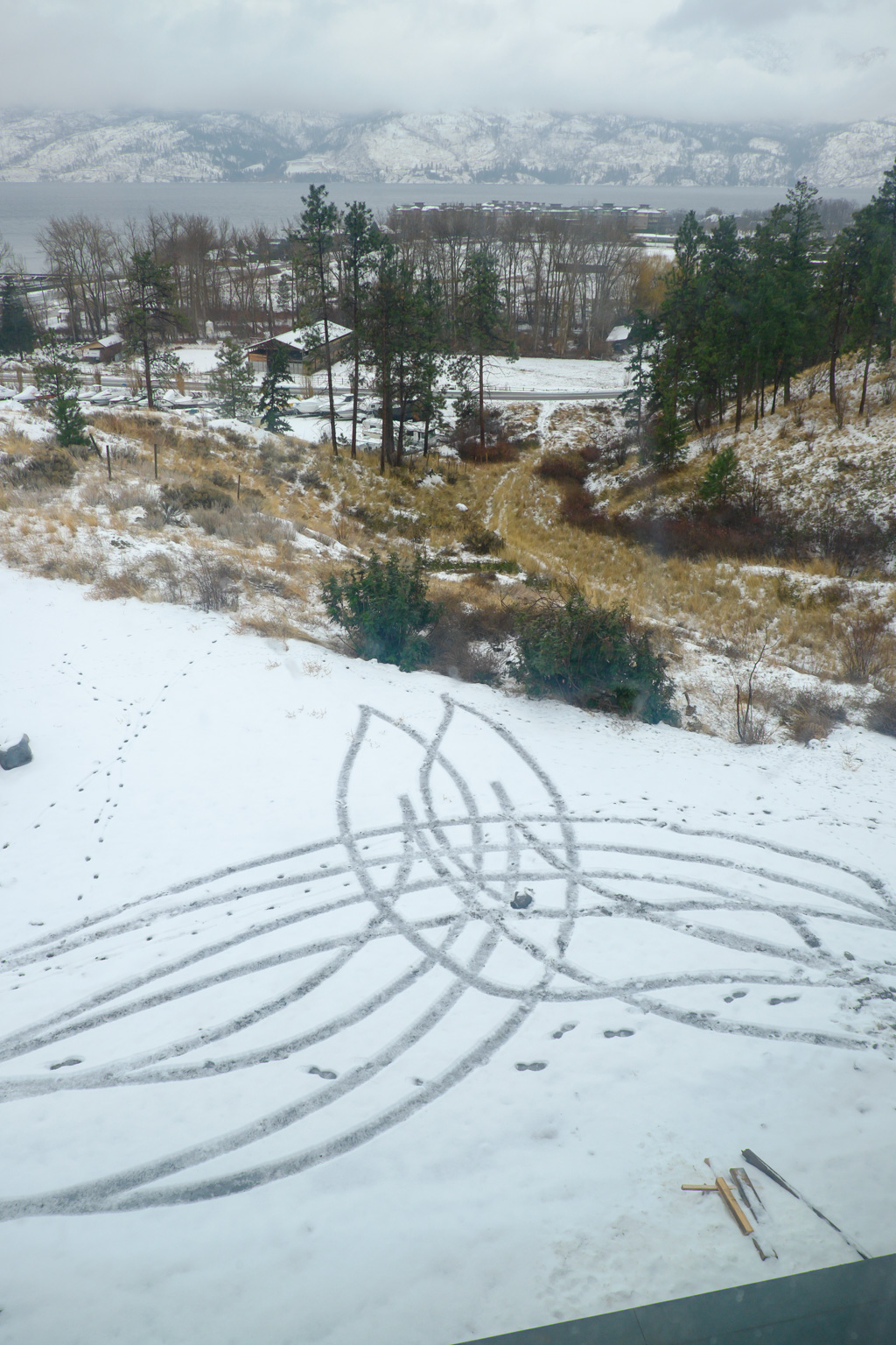 Joel’s artistic parking tracks. Yet another skill.